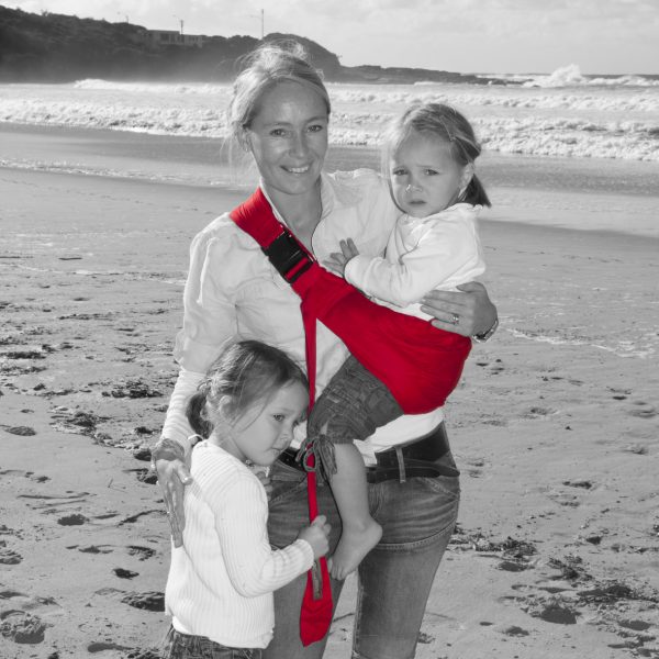 Once the toddler’s back is strong enough you can use the hipster position (instruction video). In this position the clasp sits on the chest so that the sling will sit just above your hip. The toddler sits in the sling with legs coming out on either side of the wearer’s hip.